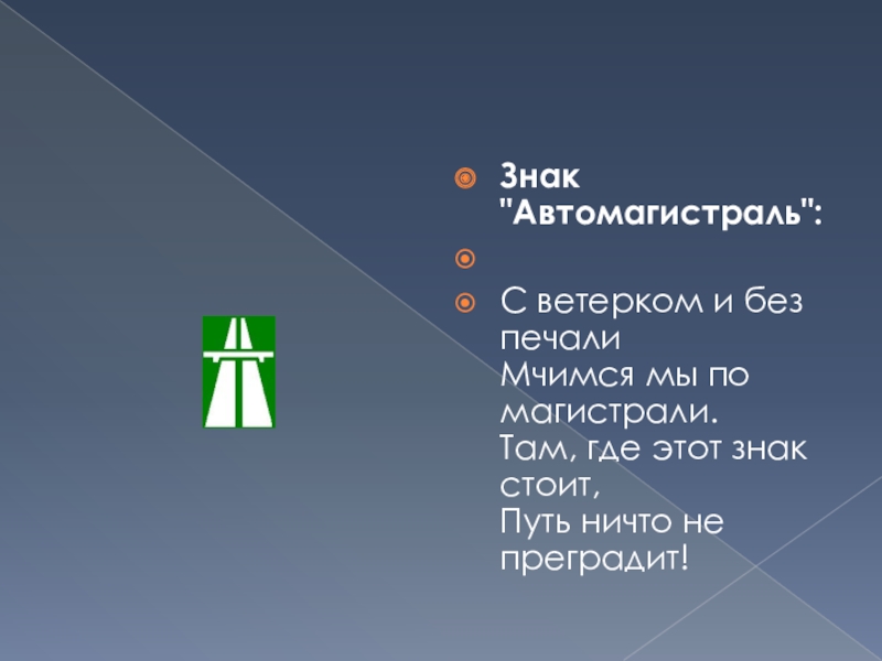 Слайд 19Знак "Автомагистраль":