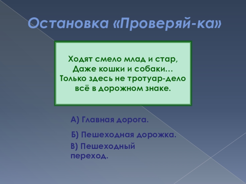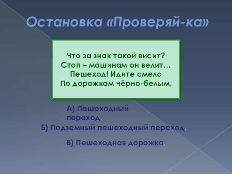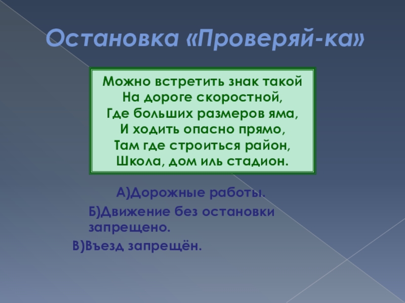 Слайд 87Остановка «Проверяй-ка»