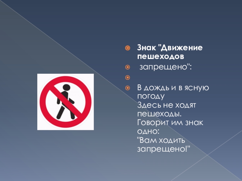 Слайд 13Знак "Движение пешеходов