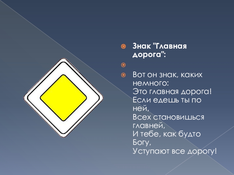 Слайд 18Знак "Главная дорога":