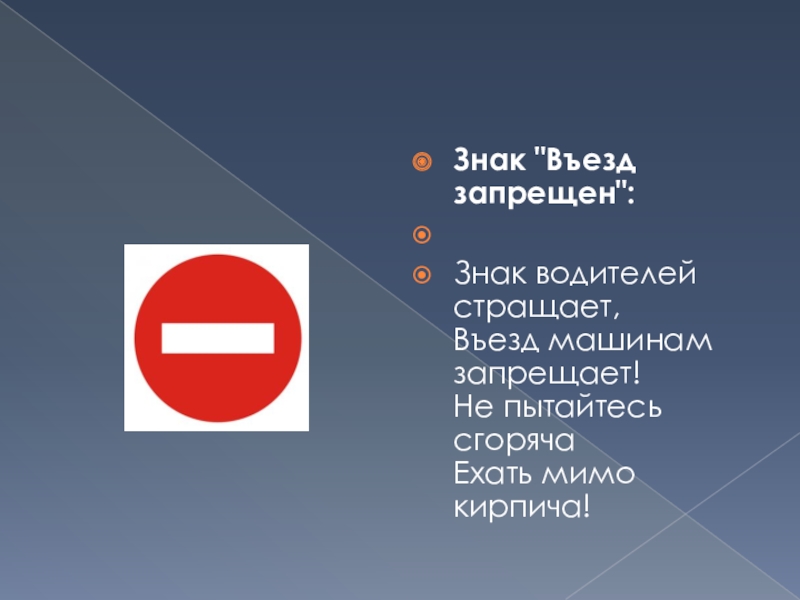 Слайд 8Знак "Въезд запрещен":