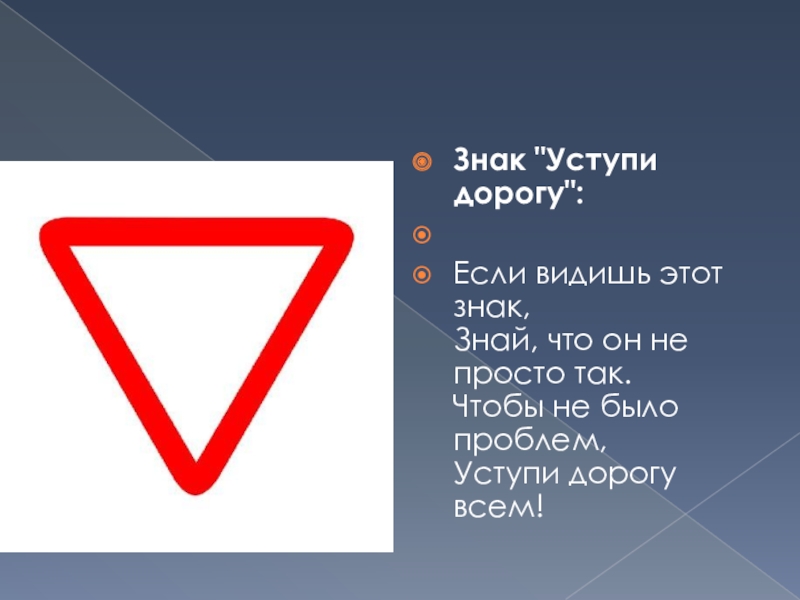 Слайд 6Знак "Уступи дорогу":