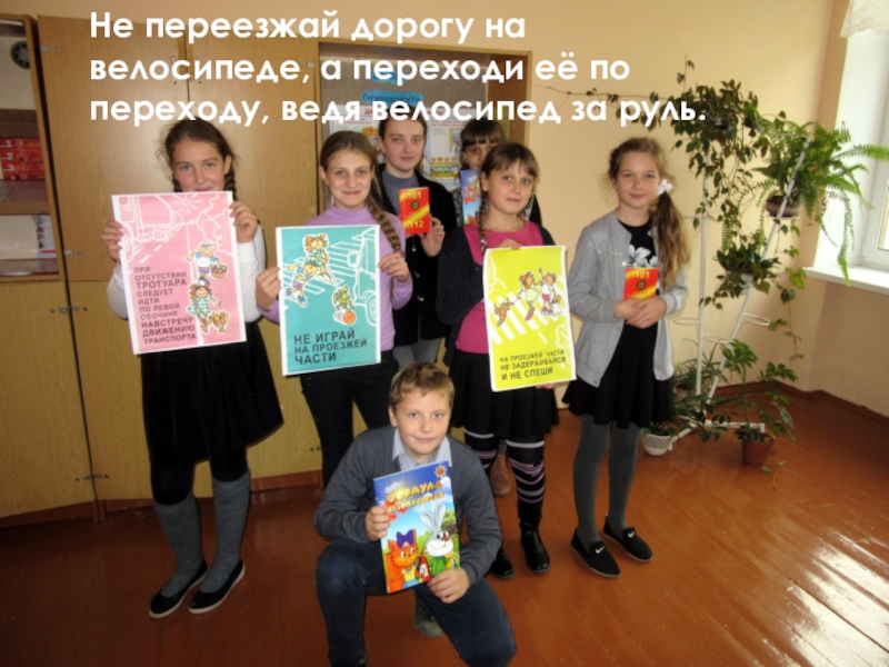 Слайд 72Не переезжай дорогу на велосипеде, а переходи её по переходу, ведя