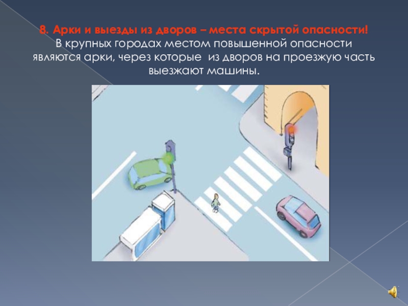 Слайд 718. Арки и выезды из дворов – места скрытой опасности!