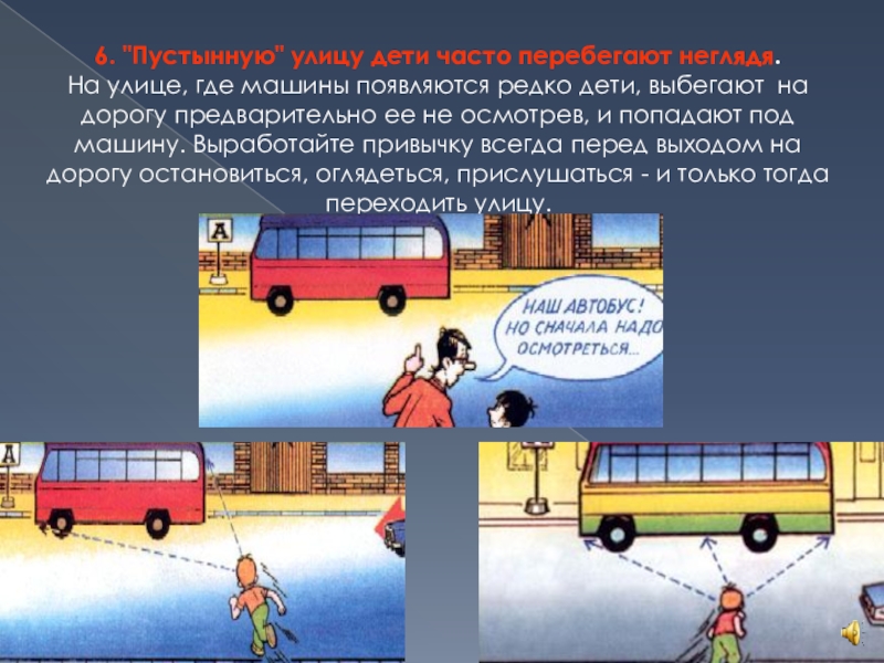 Слайд 696. "Пустынную" улицу дети часто перебегают неглядя.