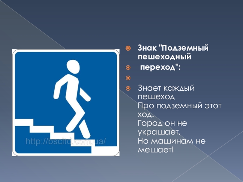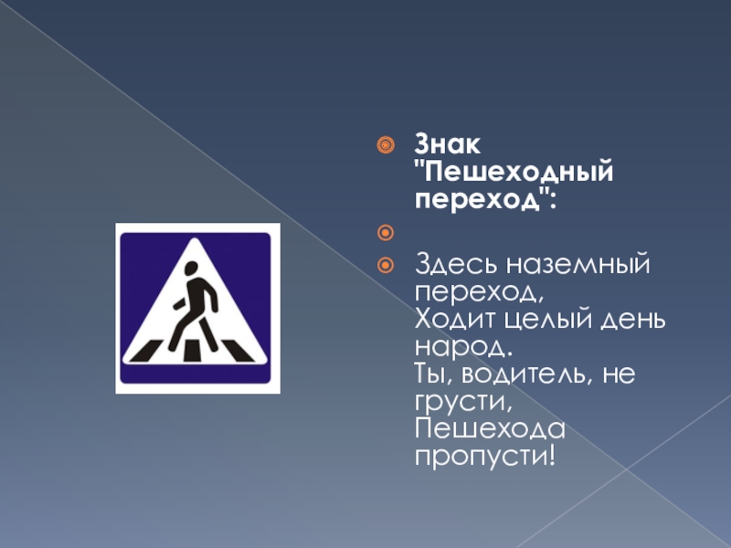 Слайд 10Знак "Пешеходный переход":