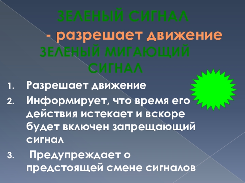 на зеленый сигнал светофора, необходимо убедиться, что опасность не угрожает. Пешеходы часто рассуждают так: "Машины еще стоят, водители меня видят и пропустят". Они ошибаются.