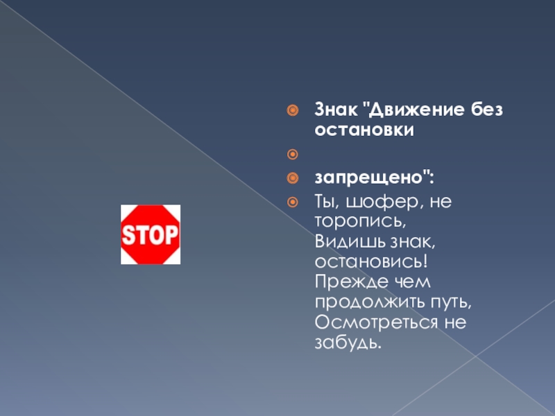 Слайд 12Знак "Движение без остановки