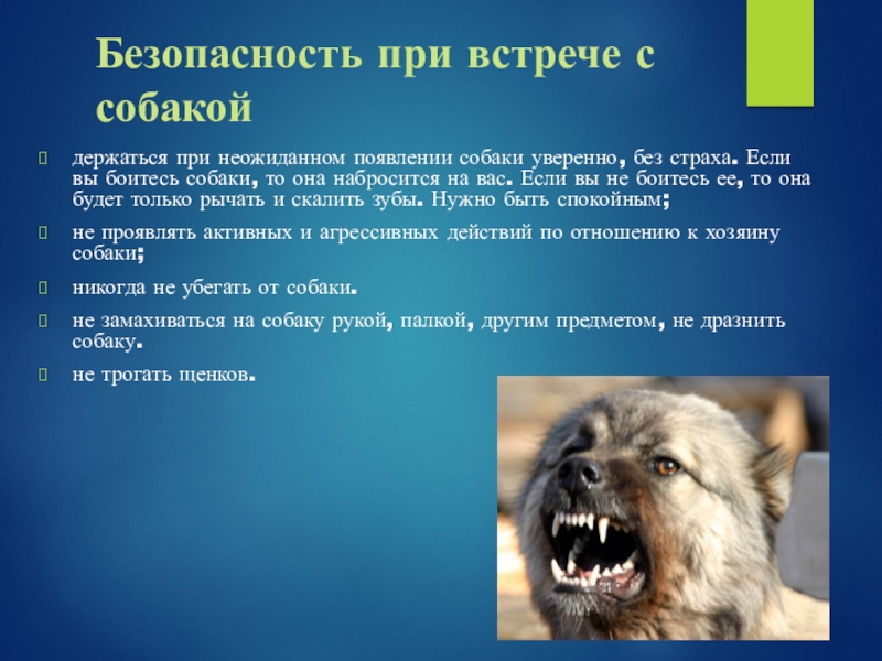 Слайд 23Безопасность при встрече с собакой