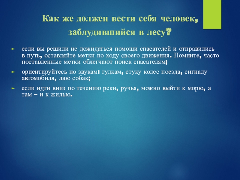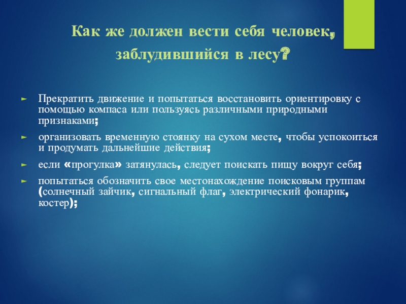 Слайд 7Как же должен вести себя человек, заблудившийся в лесу?