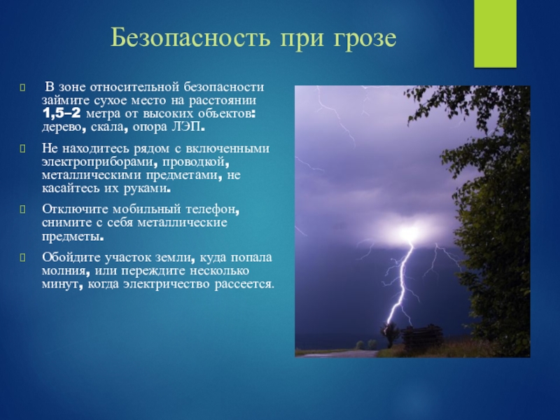Слайд 13Безопасность при грозе