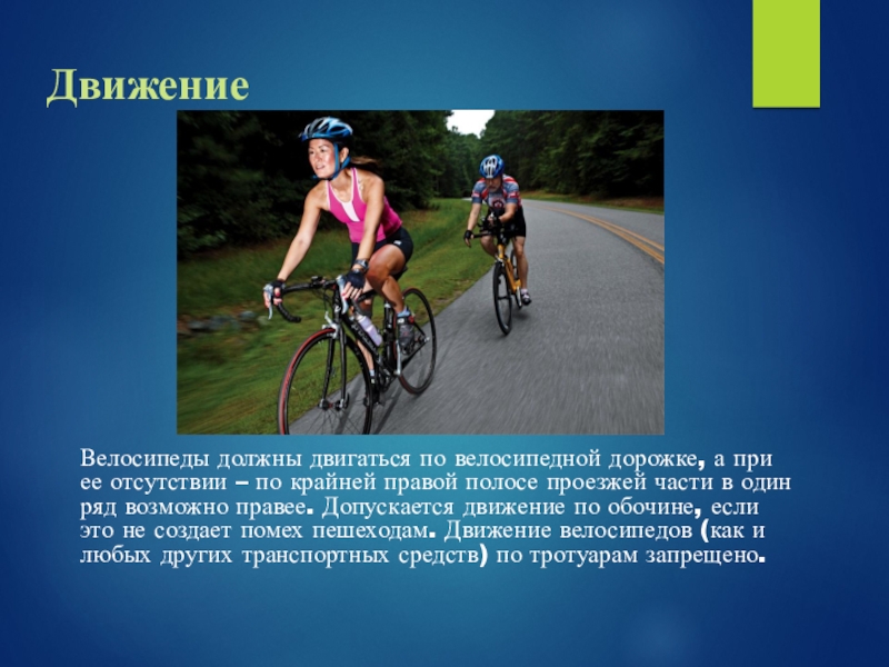 Слайд 20Правила дорожного движения для велосипедистов
