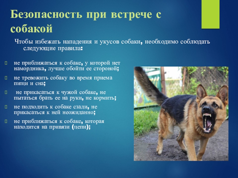 Чтобы избежать нападения и укусов собаки, необходимо соблюдать следующие правила: