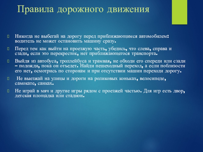 Никогда не выбегай на дорогу перед приближающимся автомобилем: