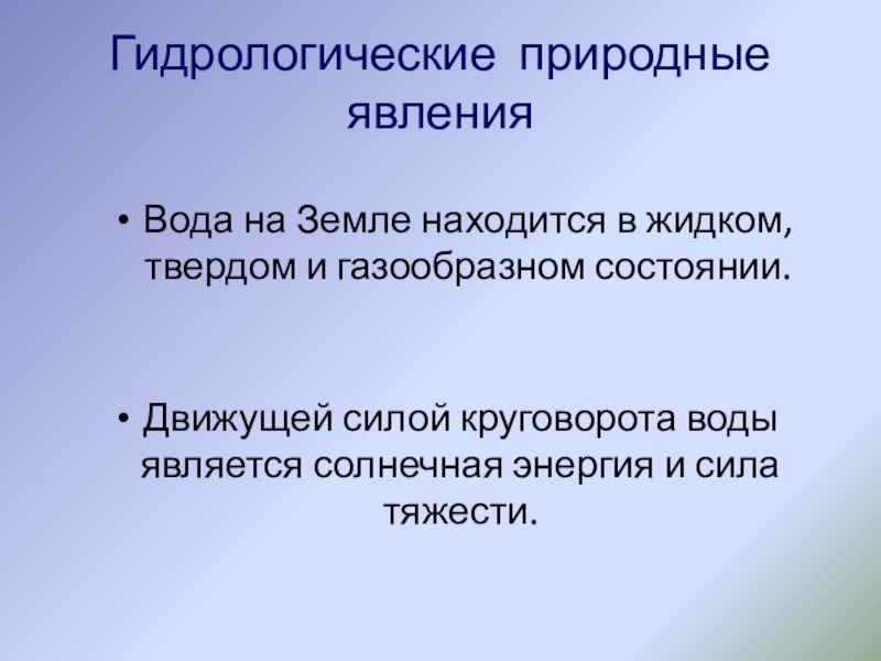 Движущей силой круговорота воды является солнечная энергия и сила тяжести.