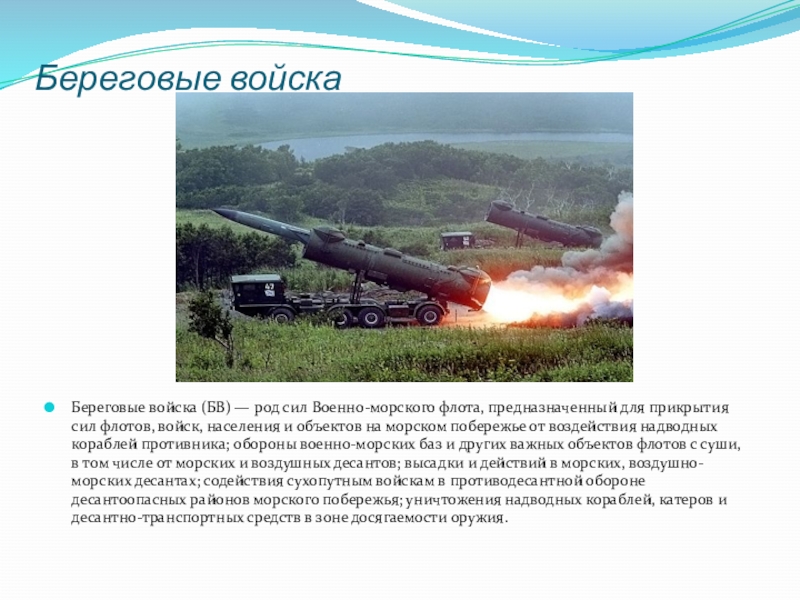 Береговые войска (БВ) — род сил Военно-морского флота, предназначенный для прикрытия