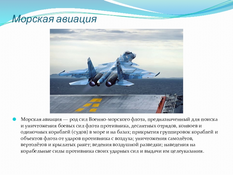 Морская авиация — род сил Военно-морского флота, предназначенный для поиска и