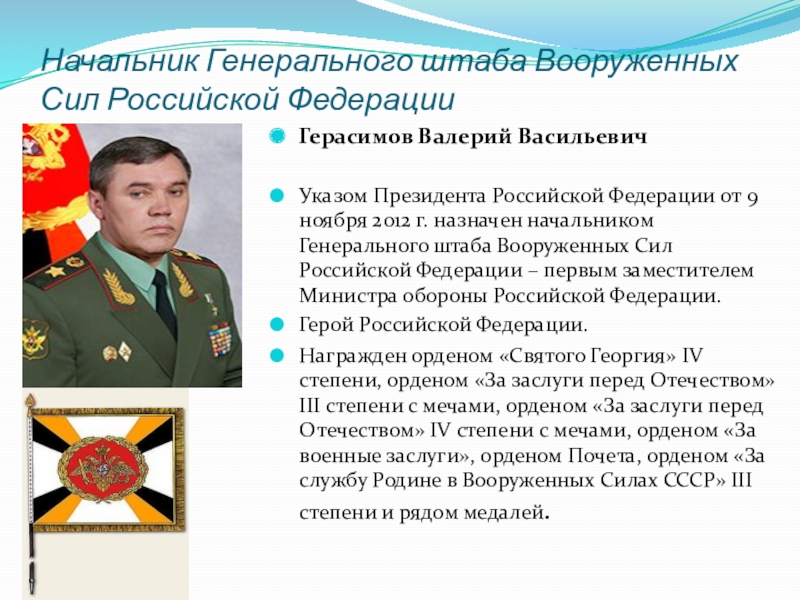 Слайд 12Начальник Генерального штаба Вооруженных Сил Российской Федерации