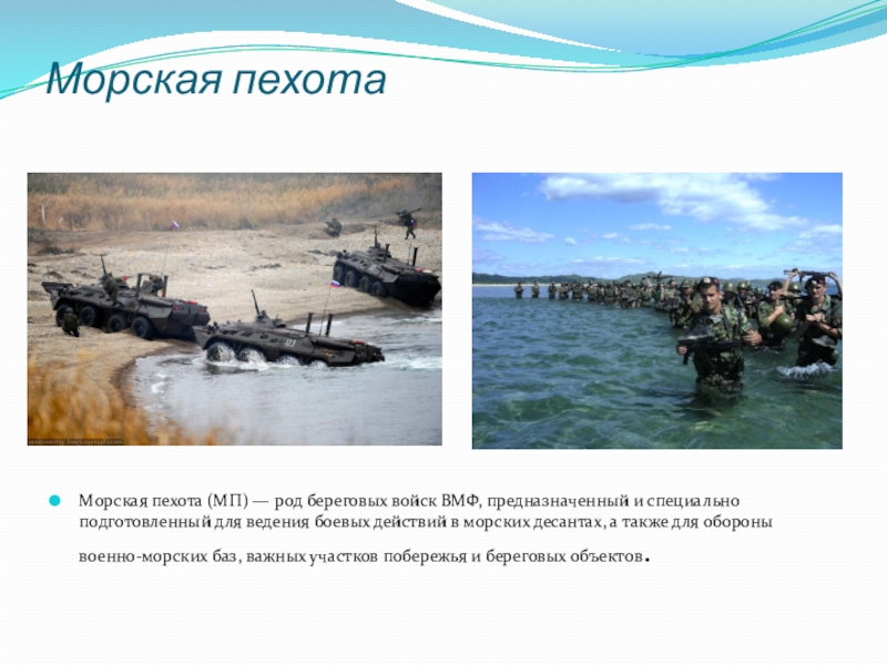 Морская пехота (МП) — род береговых войск ВМФ, предназначенный и специально