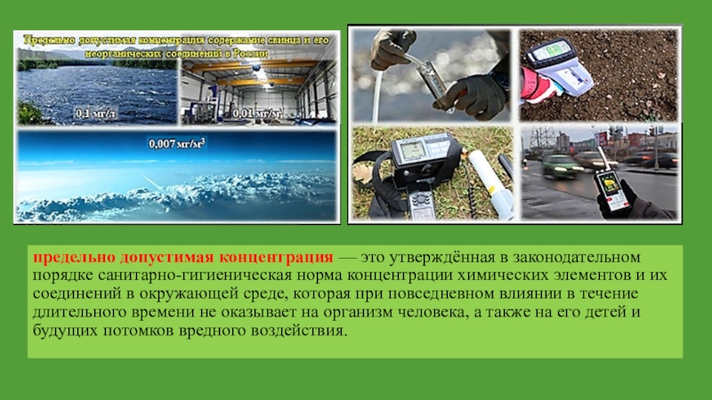 -Также это и наличие тяжёлых металлов, радиоактивных и других вредных веществ в почве сверх допустимых концентраций;