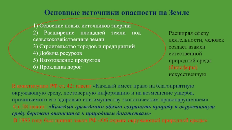 Расширяя сферу деятельности, человек создает взамен естественной природной среды (биосферы) искусственную