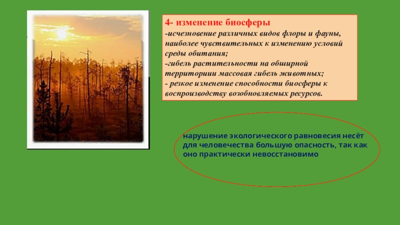 нарушение экологического равновесия несёт для человечества большую опасность, так как оно практически невосстановимо