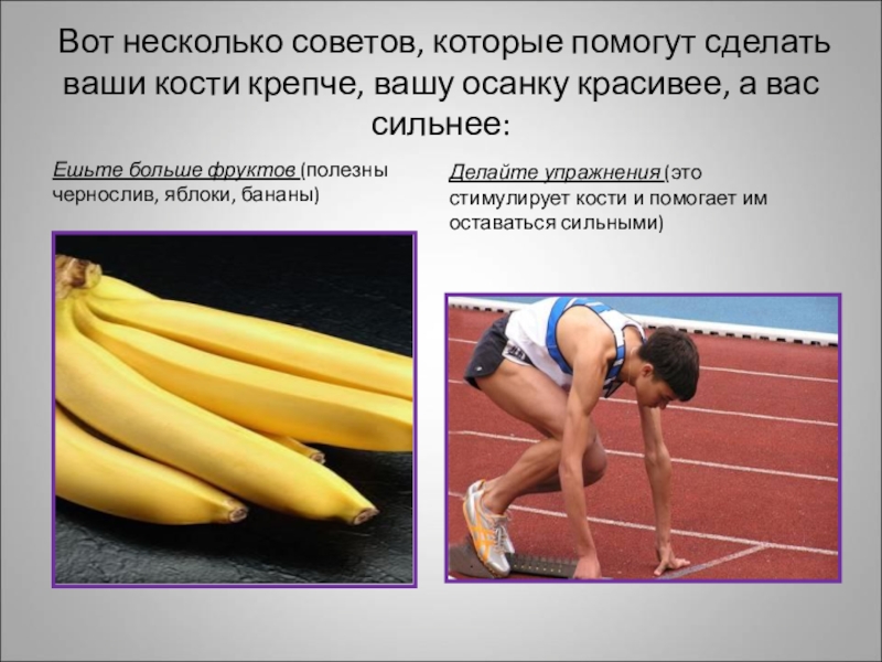 Слайд 13Вот несколько советов, которые помогут сделать ваши кости крепче, вашу осанку
