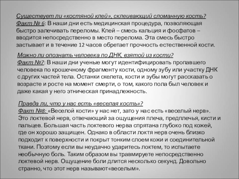 Слайд 18 Интересные, удивительные и занимательные факты Кости (исследовательская работа учащихся )