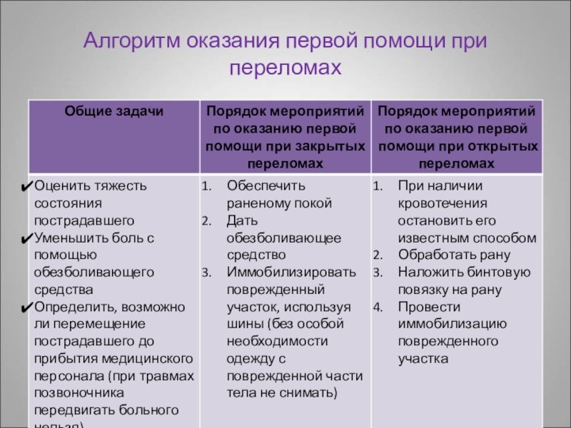 Слайд 9Алгоритм оказания первой помощи при переломах