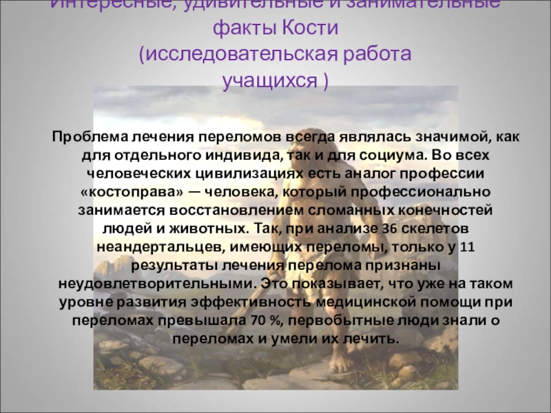 Интересные, удивительные и занимательные факты Кости (исследовательская работа  учащихся )    Проблема лечения