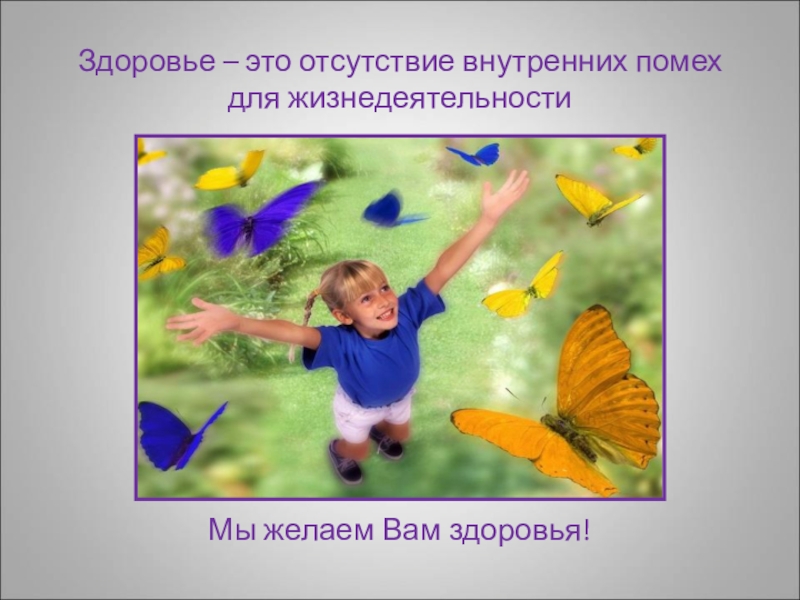 Здоровье – это отсутствие внутренних помех для жизнедеятельностиМы желаем Вам здоровья!