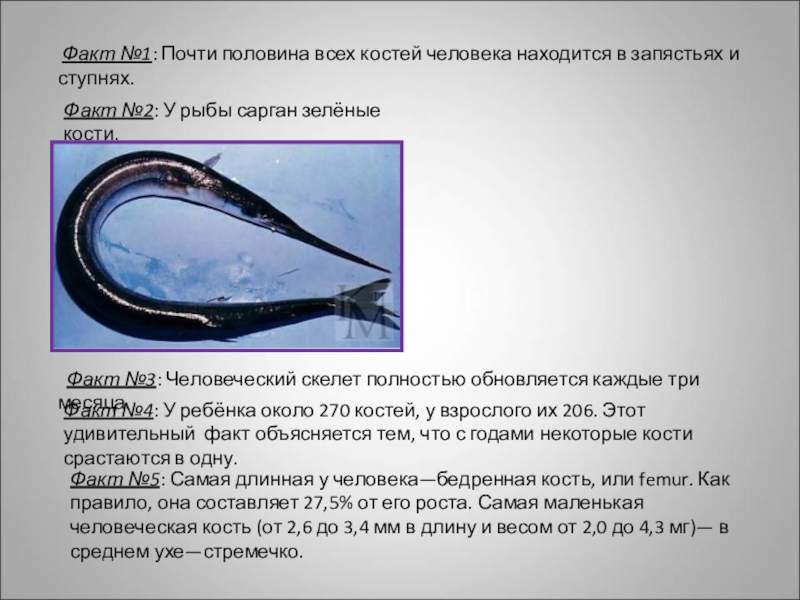 Факт №1: Почти половина всех костей человека находится в запястьях и     ступнях.Факт