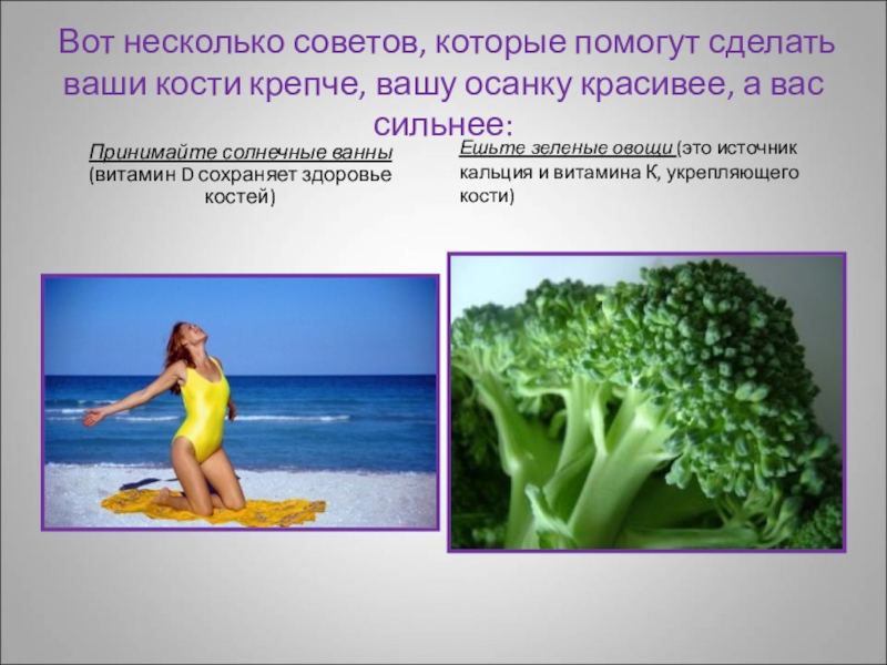 Вот несколько советов, которые помогут сделать ваши кости крепче, вашу осанку красивее, а вас сильнее:Принимайте солнечные ванны