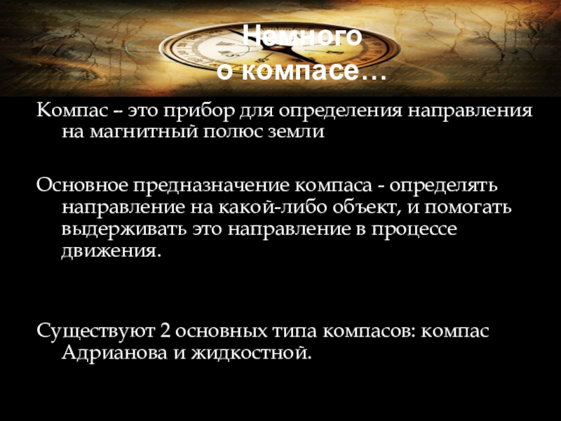 Основное предназначение компаса - определять направление на какой-либо объект, и помогать выдерживать это направление в процессе движения.