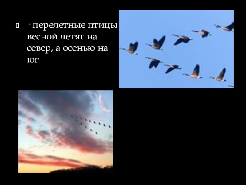 Слайд 23· перелетные птицы весной летят на север, а осенью на юг
