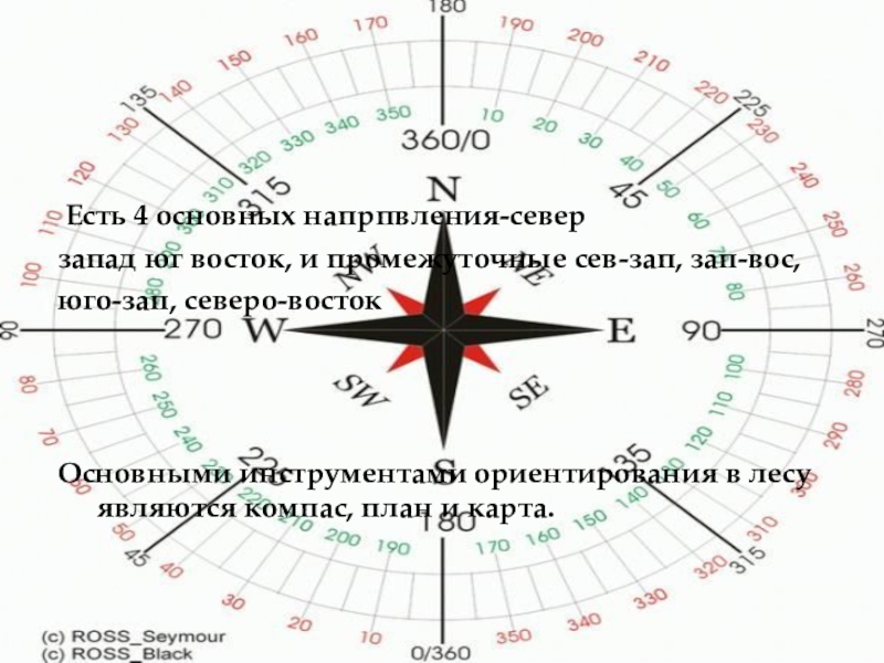 Основными инструментами ориентирования в лесу являются компас, план и карта.
