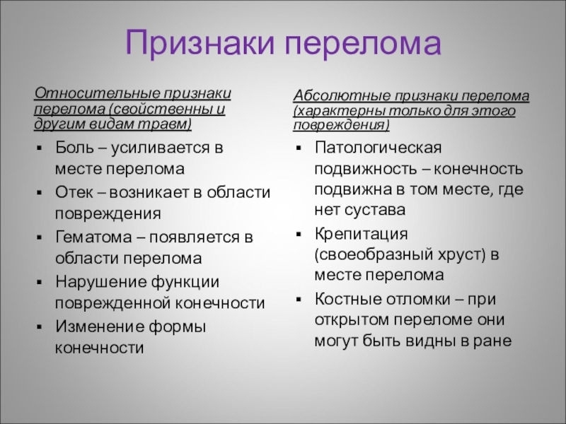 Абсолютные признаки перелома (характерны только для этого повреждения)
