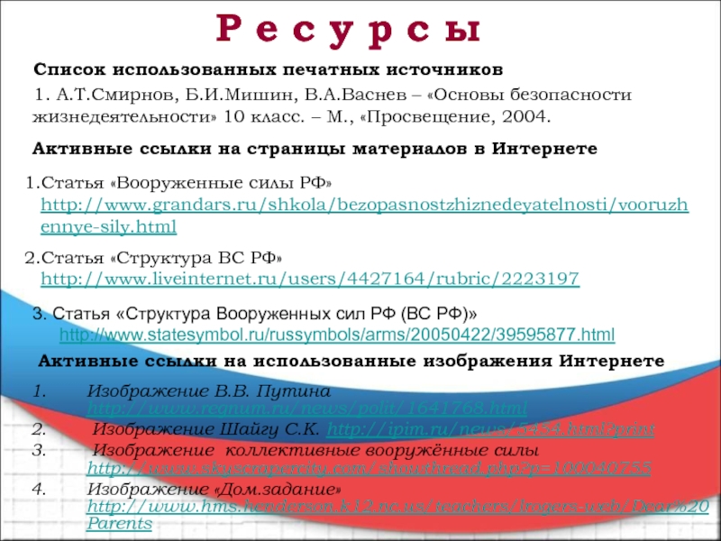 Статья «Вооруженные силы РФ» http://www.grandars.ru/shkola/bezopasnostzhiznedeyatelnosti/vooruzhennye-sily.html