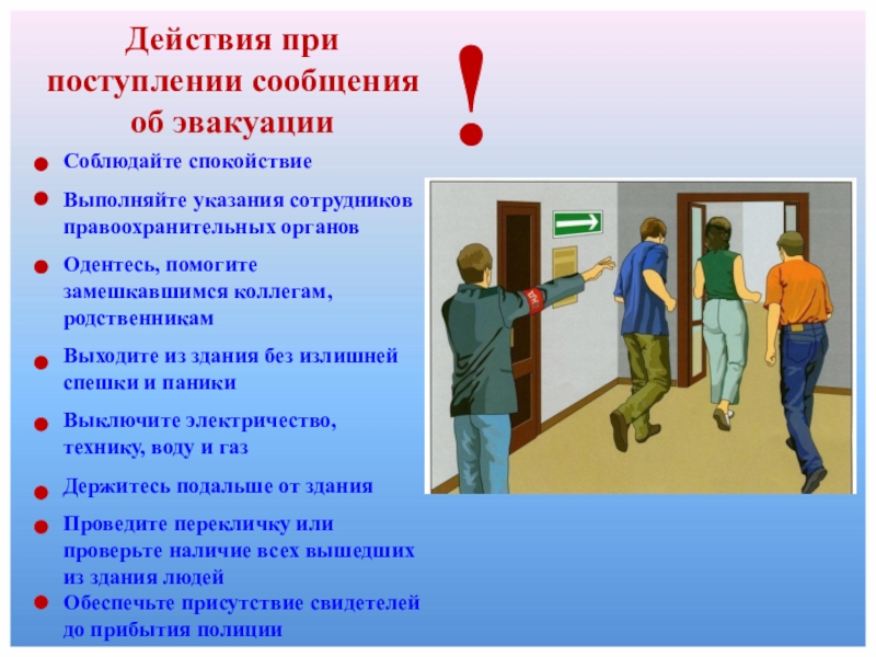 Действия при поступлении сообщения об эвакуации