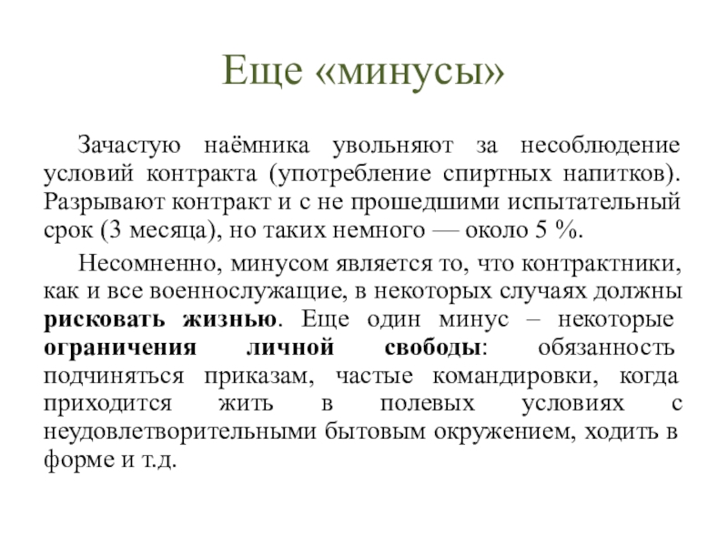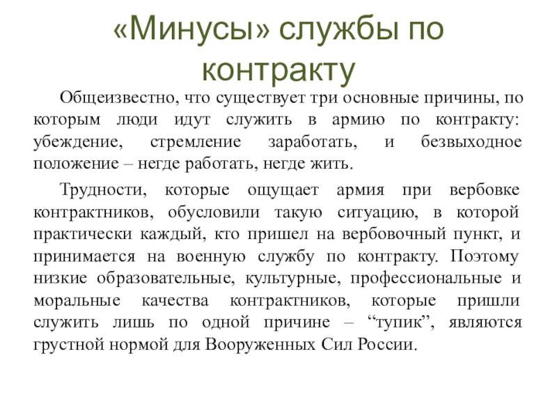 Слайд 9«Минусы» службы по контракту