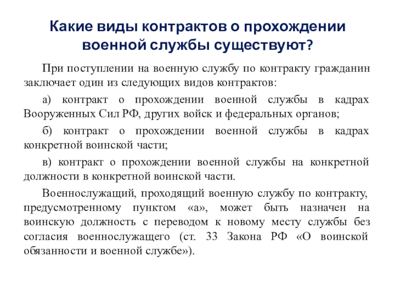 Какие виды контрактов о прохождении военной службы существуют?