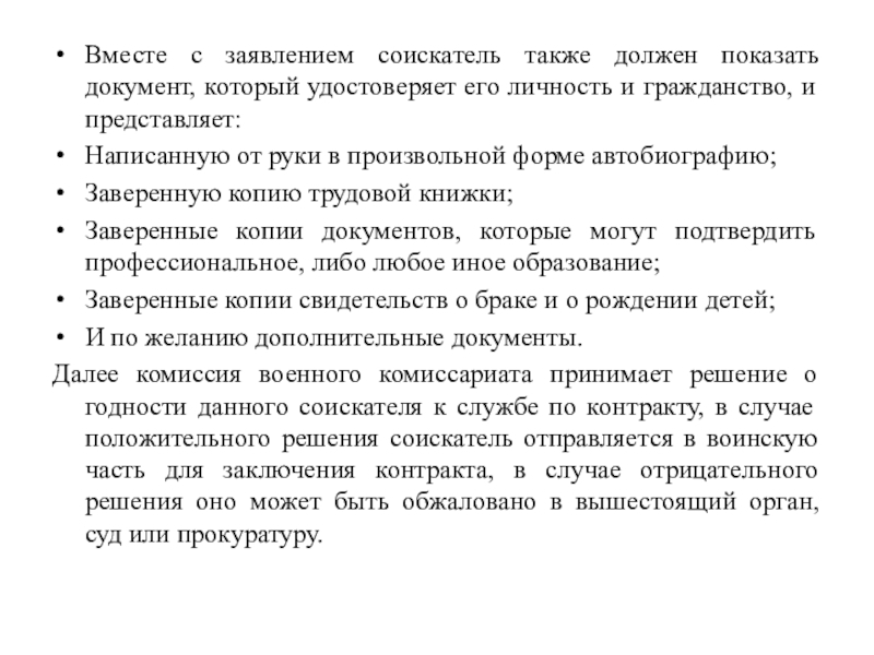 Слайд 6Вместе с заявлением соискатель также должен показать документ, который удостоверяет его