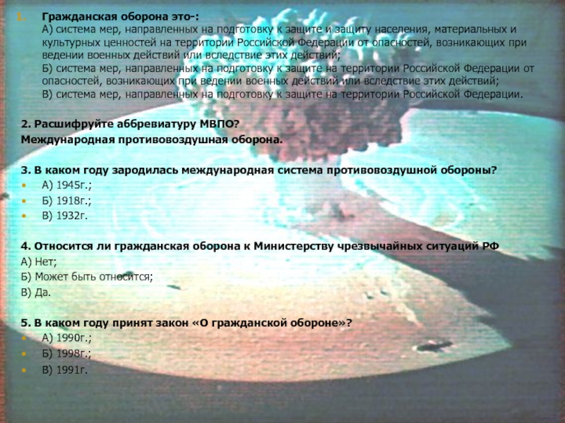 Б) система мер, направленных на подготовку к защите на территории Российской Федерации от опасностей, возникающих при ведении военных действий или вследствие этих действий;