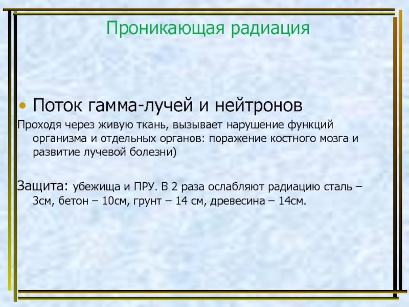 Слайд 23Проникающая радиация - совместное излучение гамма-лучей и нейтронов.