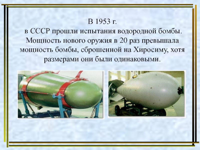оружия в 20 раз превышала мощность бомбы, сброшенной на Хиросиму, хотя размерами они были одинаковыми.