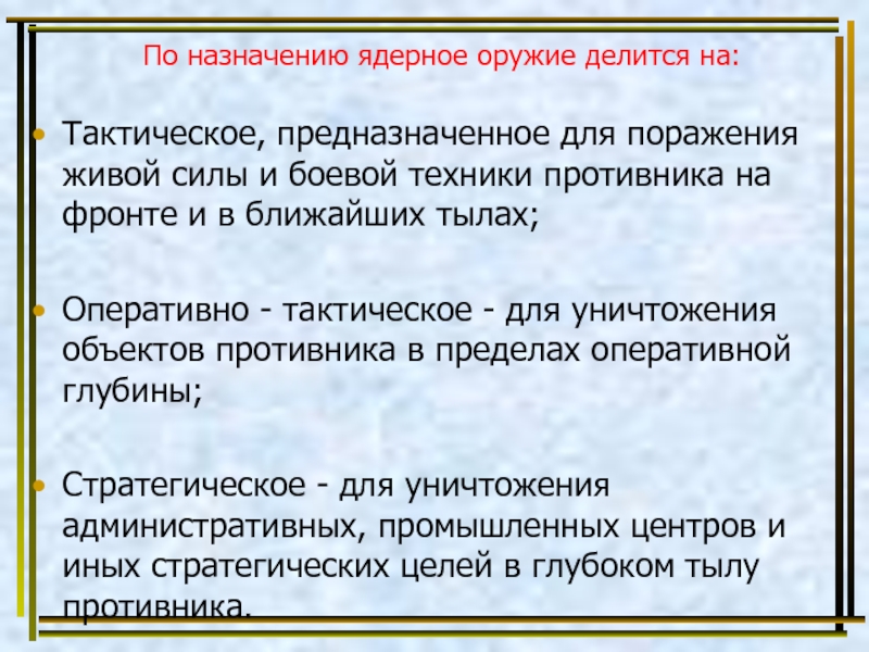 Слайд 14Тактическое, предназначенное для поражения живой силы и боевой техники противника на