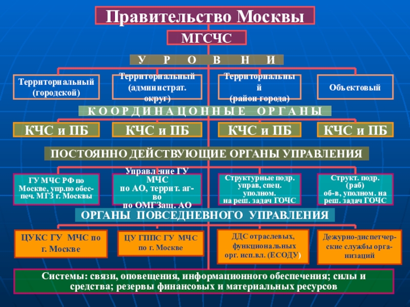 Правительство МосквыМГСЧСТерриториальный(городской)Территориальный(администрат. округ)Территориальный(район города)ОбъектовыйУ   Р   О   В    Н