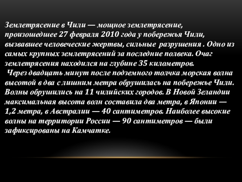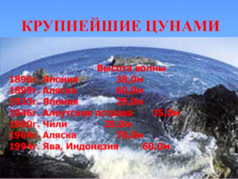 Подводных и прибрежных землетрясениях