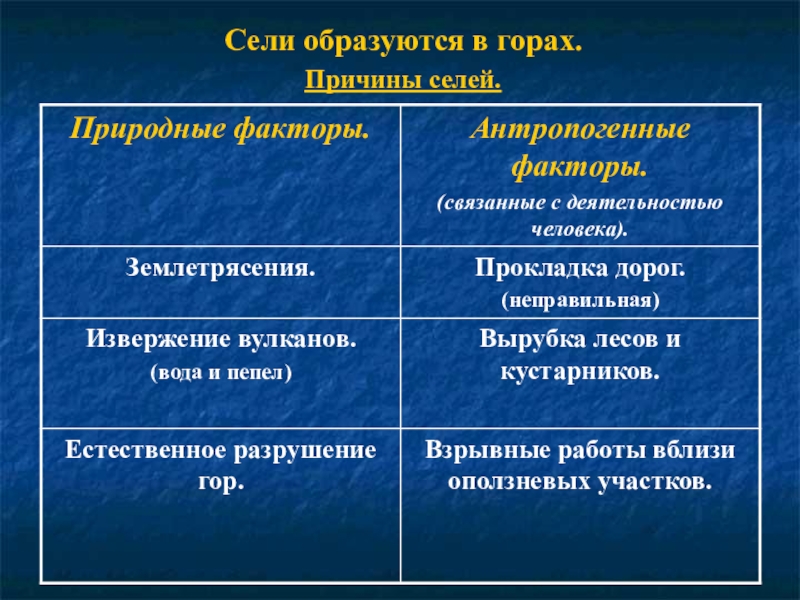 Презентация, доклад к уроку ОБЖ в 7 классе на тему Сели