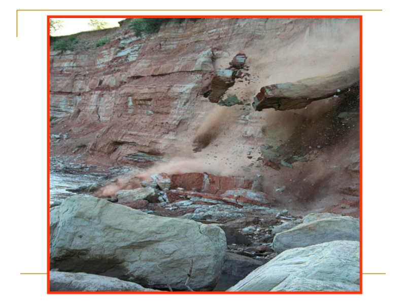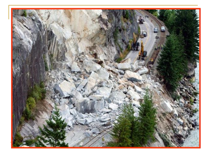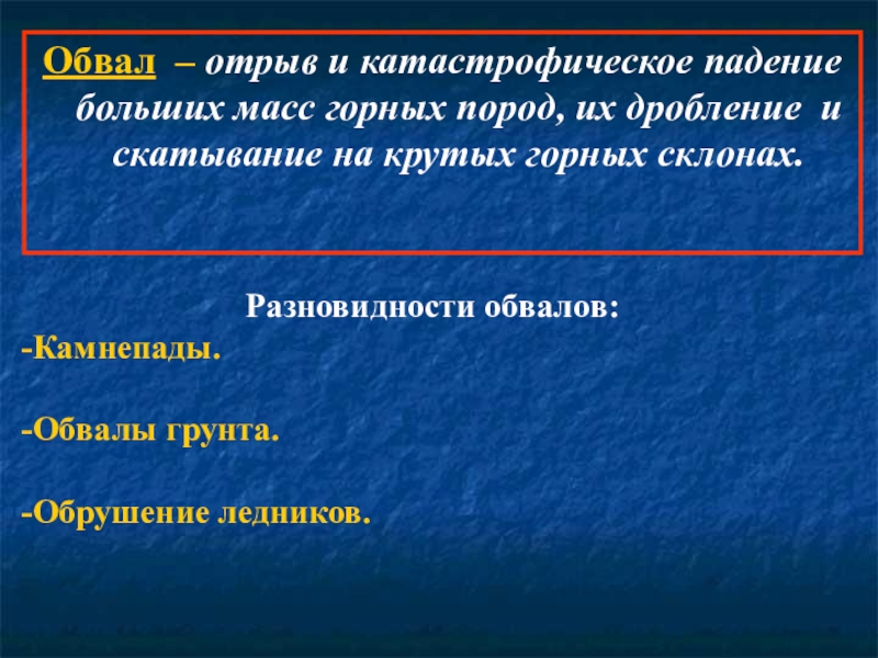 Слайд 12Обвал – отрыв и катастрофическое падение больших масс горных пород, их